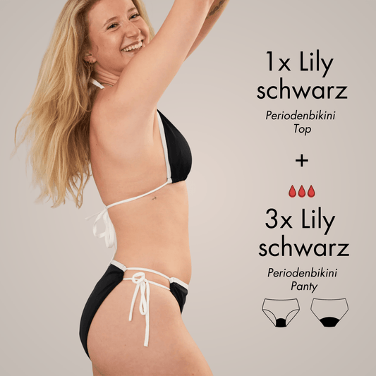 Periodenbikini Set „Lily“ schwarz - 3x Pantys + Top
