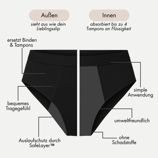 Black Deal - 4 Periodenslips + GRATIS Wetbag