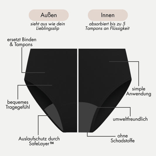 Black Premium Deal - 5 Periodenslips + GRATIS Wetbag