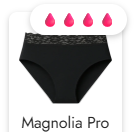 Magnolia Pro: Nahtloses verarbeitet, für starke Blutungen, auch ideal für Bauchschläferinnen, da die Schutzschicht vom vorderen bis zum hinteren Bund reicht, ersetzt bis zu 4 Tampons.